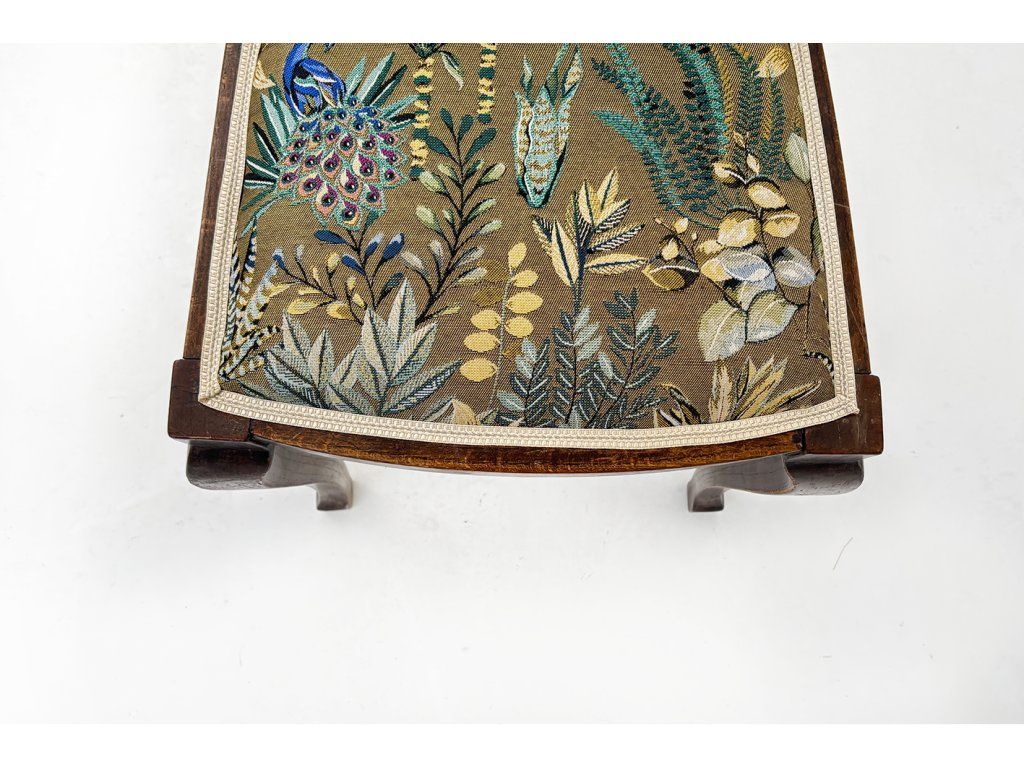 A redesigned chair with gold upholstery.